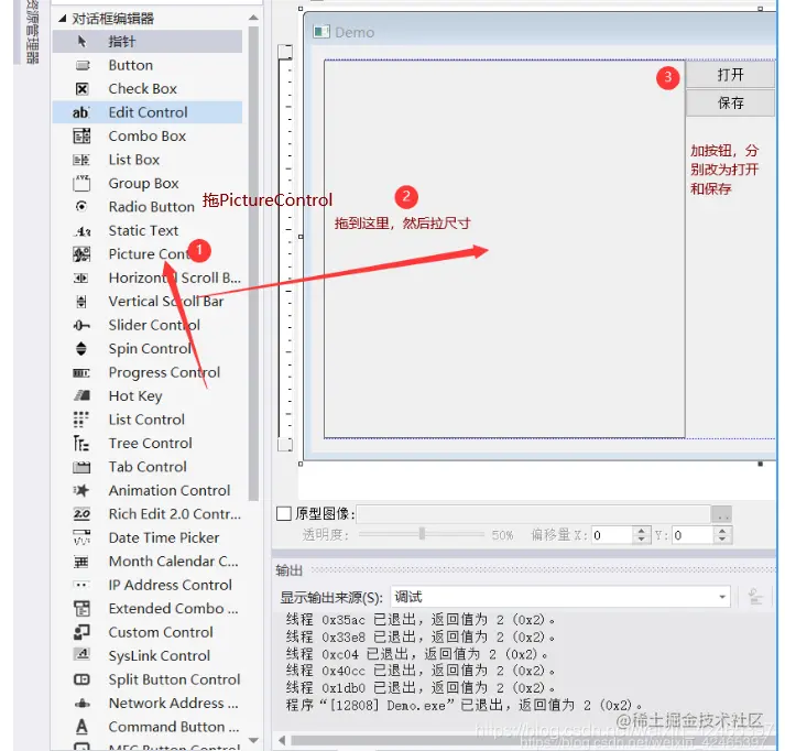 双击打开按钮进行添加事件响应程序,当然在这之前你也可以改变按钮的ID,这样有利于程序的读的顺眼。如果你都双击完了,就别再改ID!!!这里我改成了IDC_OPEN和IDC_SAVE