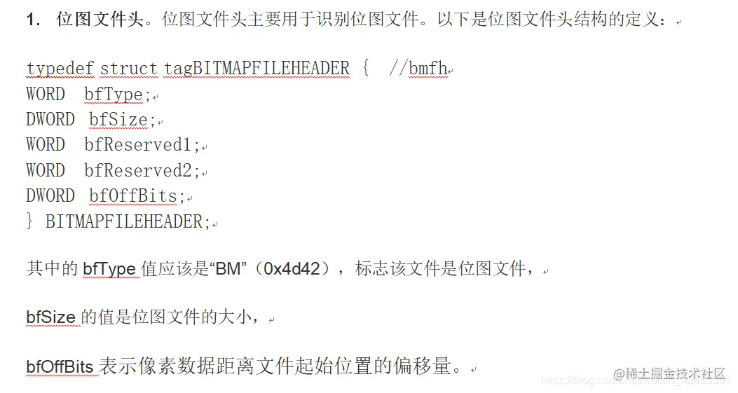 bfOffBits = sizeof(BITMAPFILEHEADER) + sizeof(BITMAPINFOHEADER) +1024(灰度图像有的颜色表,彩色图像没有)。