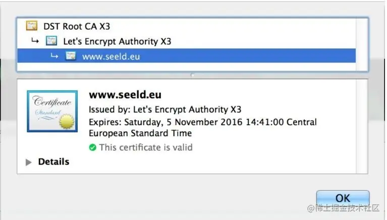 如果您访问 seeld.eu:8443,您可以看到 HTTPS 已成功配置并且最重要的是可以正常工作。为了我们的项目,我们做了一些额外的步骤来让 HTTPS 使用端口 80。您可以使用 seeld.eu URL 浏览它。