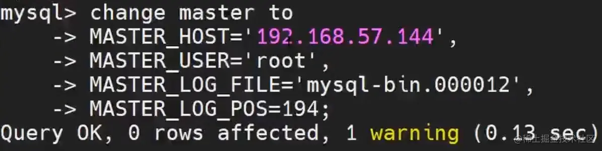 source xxx.sql实现主备数据之间的同步,注意此时从库需要和主库一样需要将binlog的日志的写入位置进行同步,而binlog文件的写入位置通过主库的show master status进行查看,比如这里从库就需要同步到主库的.000012的194位置。