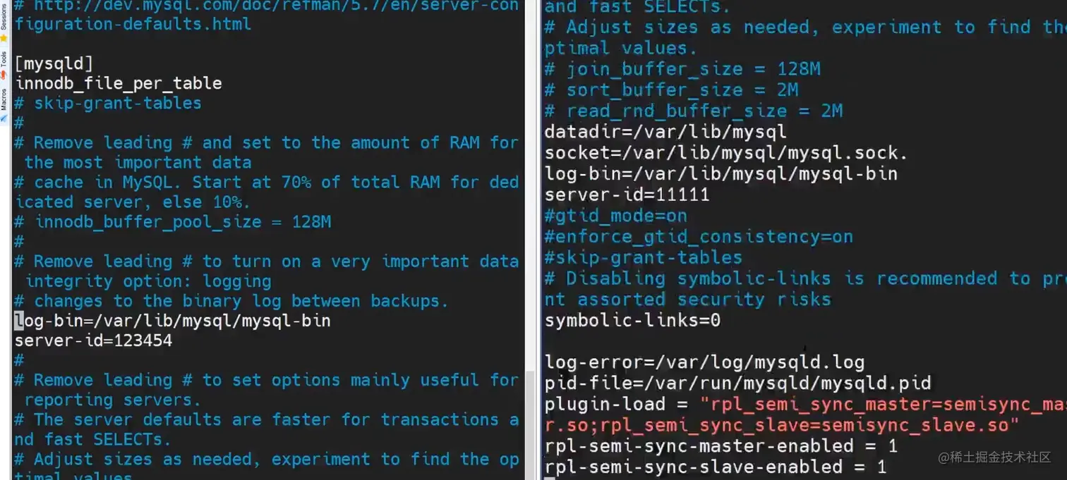 - 两个服务器都需要修改配置ini文件并且开放binlog,图中为部分配置:
