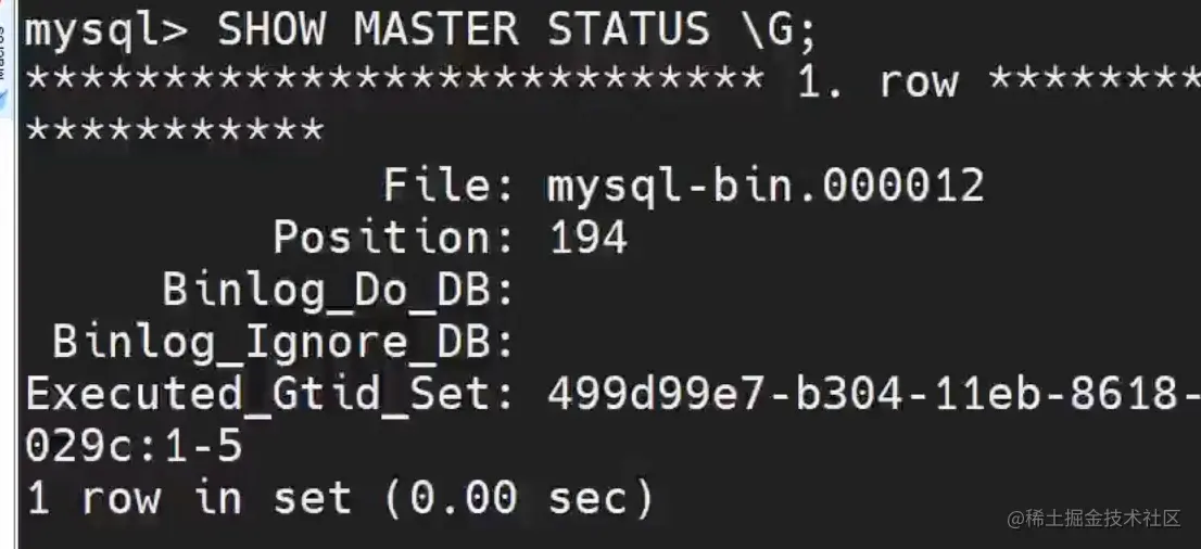 - 等待GTID(5.7.6之后每次都会返回GTID),通过下面的命令检查唯一事务ID:
