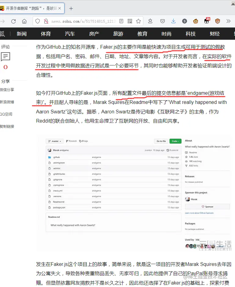 办法其实有的,比如上面图片里的faker.js的作者寻求大公司收购的时候,如果那公司真的收购了,那么他的生活便有了稳定的来源,肯定不会出现“删库跑路”的现象。另外,如果每个使用他作品的人都从免费变为付费,作者有了足够的生活经济来源,那么便有足够的精力专职做这个工作,这个作品只会变的更加强大和稳定可靠。