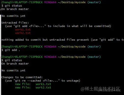 git add . (*注意add后面空格加“ . ”)把所有工作区的文件添加到暂存区