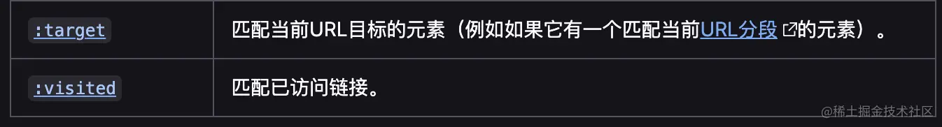 比如:a:visited:所有未曾被访问的a元素