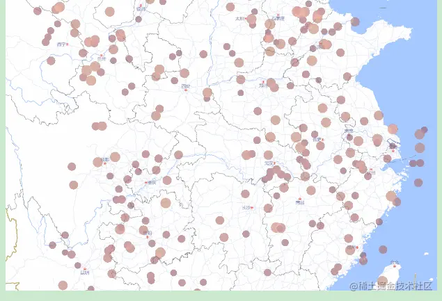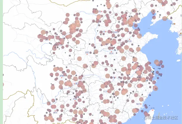 常规的包括散点图、飞线动画、3D建筑等等,这里只会介绍常用的部分,其他的可以去官方文档继续了解学习。也要学会如何快速复用官方的案例。
