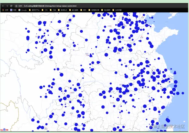 绘制数据:通过webgl生成视图并初始化intensity对象帮助控制点,然后生成layer并计算size和color,最后将layer加入视图中并进行数据绑定