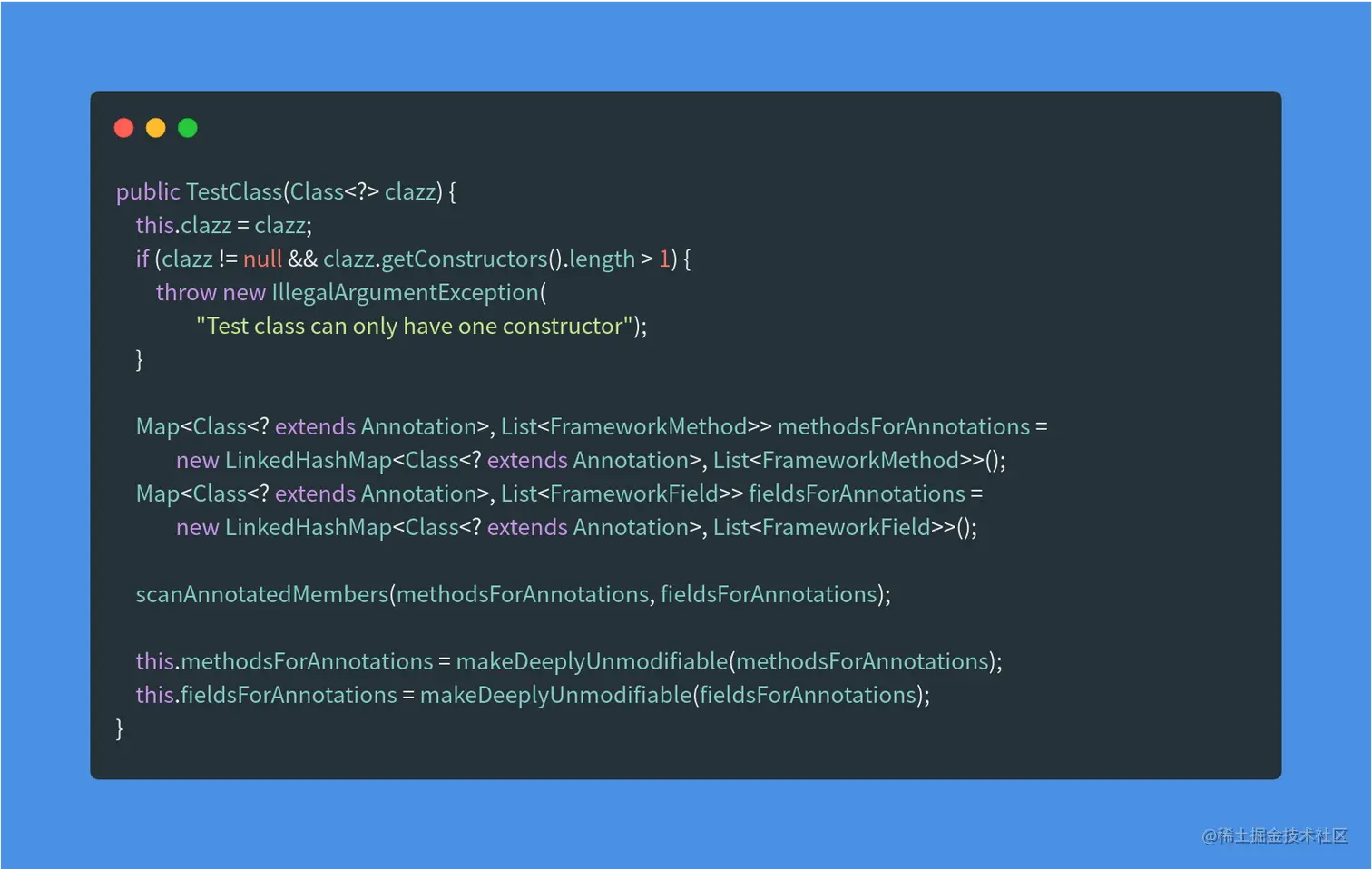 同时TestClass应该有方法来解析Class里的field和method,并分别构建为FrameworkField和FrameworkMethod