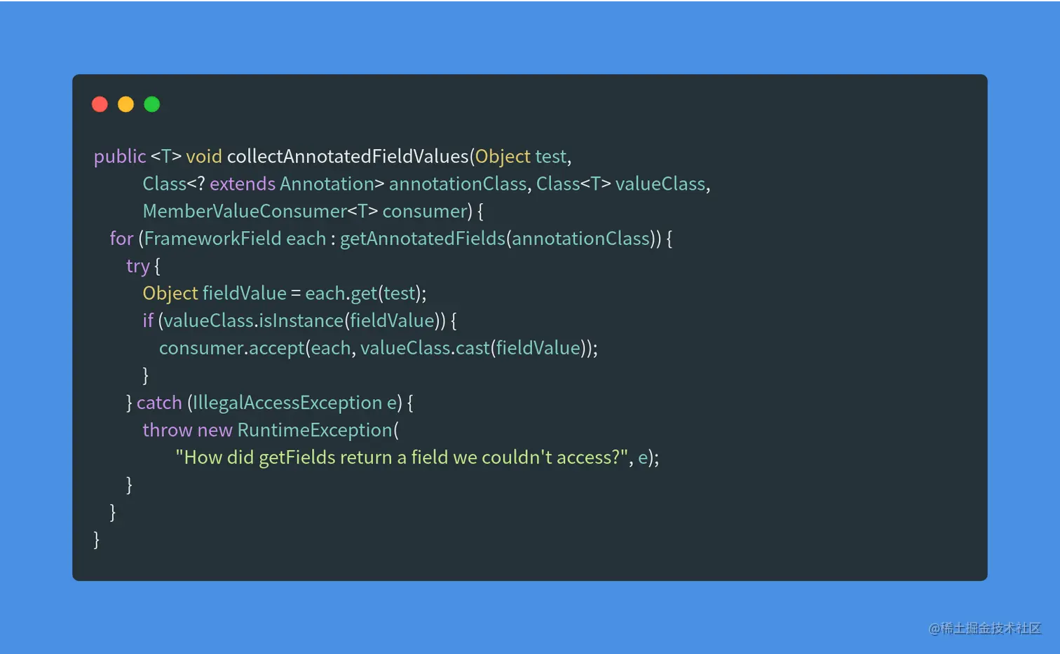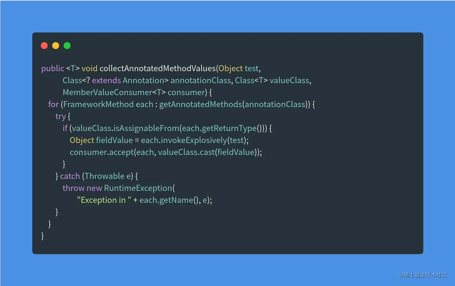 另外可以发现TestClass中有两个方法collectAnnotatedFieldValues和collectAnnotatedMethodValues,从名字就可以了解到,这两个方法是用于获取字段和方法的值,并设置到了MemberValueConsumer中。