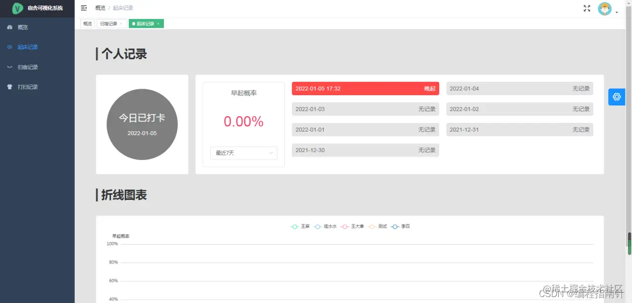 仪表盘概揽:选择不同的宿舍楼查看相关信息