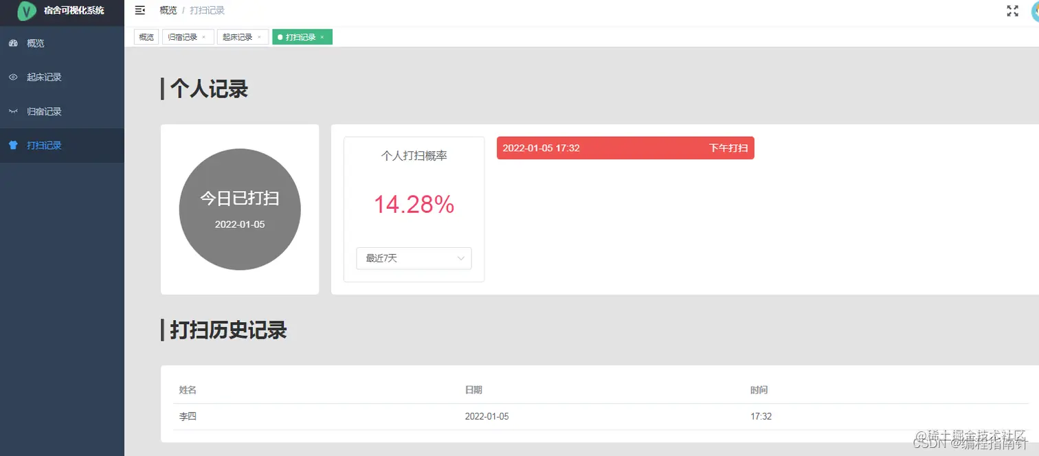 考虑到实用性,该系统需要拆分为两大子系统,一个是学生端系统,一个是后台管理端系统。学生端系统主要提供给学生使用,负责一些宿舍记录及个人信息记录的基本操作;后台管理模块则是主要负责对所有学生信息的整理,提供宿舍管理、楼层管理、数据查看等权限,提供给宿舍管理员使用的。