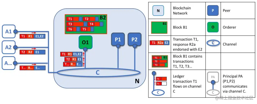 最新版 Hyperledger Fabric 的设计中,根据功能将节点角色解耦开,让不同节点处理不同类型的工作负载。从业务逻辑上又将节点分为背书节点(Endorser)和提交节点(Committer)。