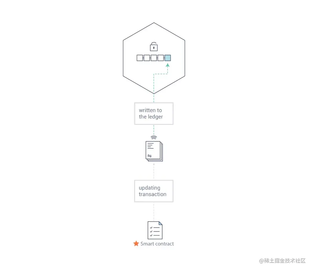 为了支持信息的持续更新,以及对账本进行管理(写入交易,进行查询等),区块链网络引入了智能合约来实现对账本的访问和控制。智能合约不仅仅可用于在区块链网络中打包信息,它们也可以被用于自动的执行由参与者定义的特定交易操作。