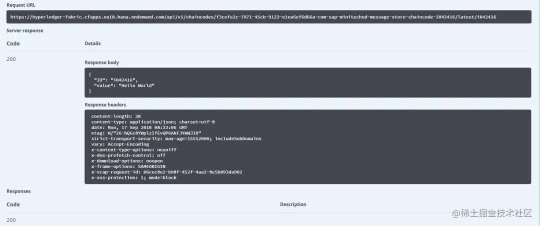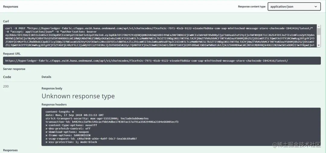 post 请求在 SAP 云平台上的超级账本执行成功,返回 200 响应码:
