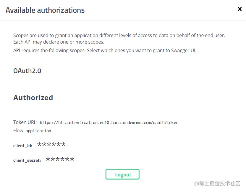 输入第四步创建 Service Key 后生成的 clientID 和 clientSecret 进行认证: