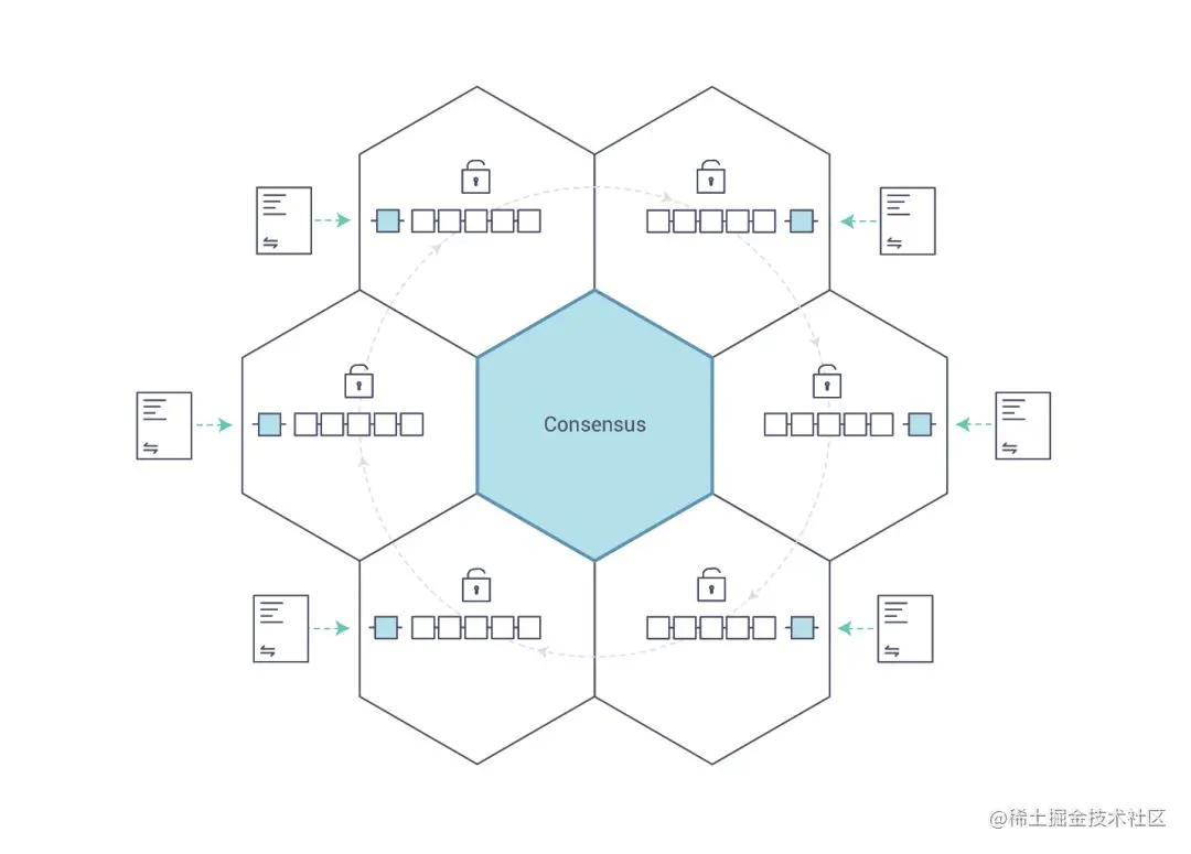 Hyperledger Fabric 使用独立的排序节点(order)来提供共识服务,负责排序交易,提供全局确认的交易顺序。