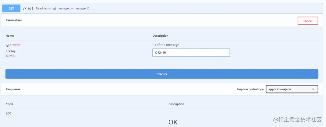 紧接着执行 get 请求,输入刚才写入的数据 id: i042416: