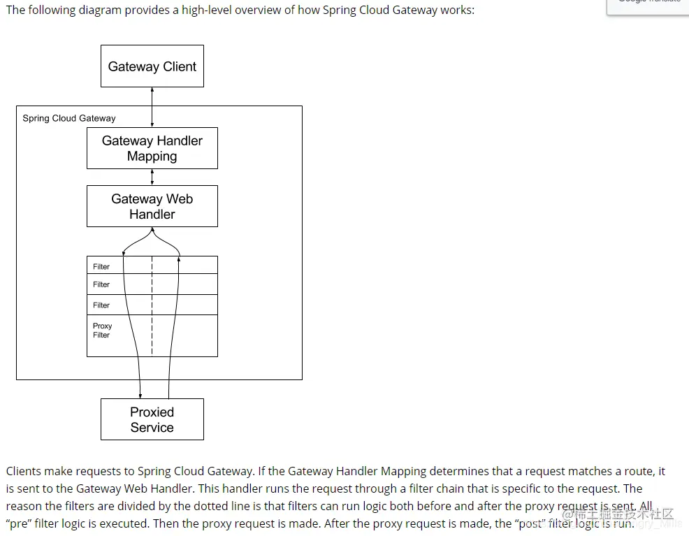 简单说就是网关收到客户端的 request 之后经过一系列请求过滤器到代理的服务,收到 response之后,再经过一系列的响应过滤器返回到网关->客户端。