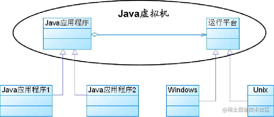 Java 语言通过 Java 虚拟机实现了平台的无关性。