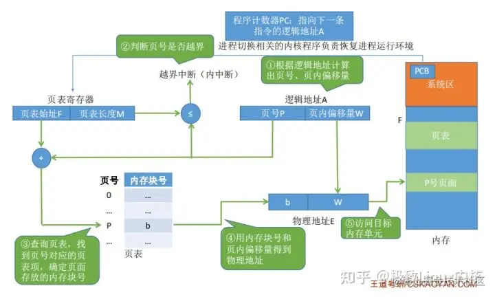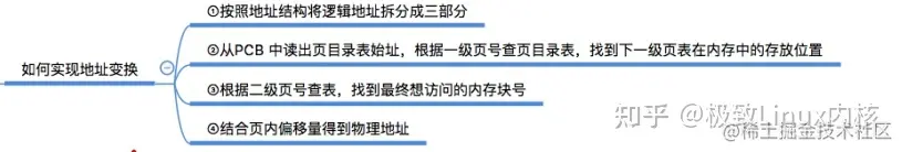 地址变换机构的任务,关键是将逻辑地址中的页号转换为内存中的物理块号。物理块号内的偏移地址就是页内偏移地址。