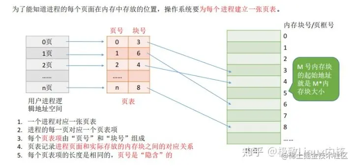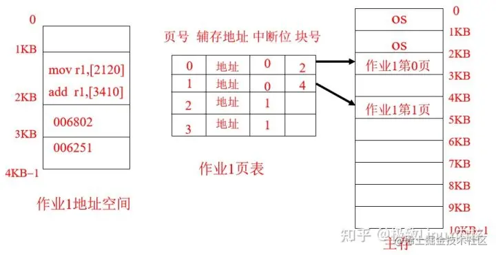 ③一个作业,只要它的总页数不大于内存中的可用块数,系统就可以对它实施分配。系统装入作业时,以页为单位分配内存,一页分配一个块,作业所有的页所占的块可以不连续。系统同时为这个作业建立一个页号与块号的对照表,称为页表。