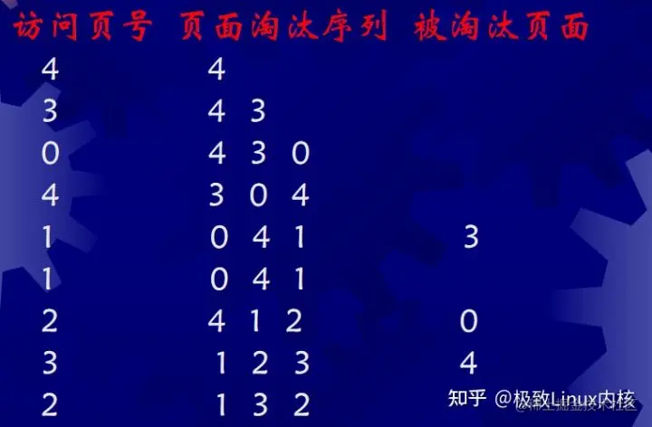 b、堆栈法: 每当进程访问某页面时,便将该页面的页号从栈中移出,将它压入栈顶。栈顶始终是最新被访问的页面的编号。栈底则是最近最久未被使用的页面的页面号。