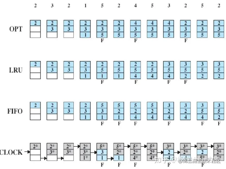 用OPT、LRU、FIFO、Clock算法写出页面置换过程