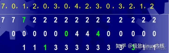 假定系统为某个进程分配了三个物理块,进程的访问顺序为7,0,1,2,0,3,0,4,2,3,0,3,2,1,2