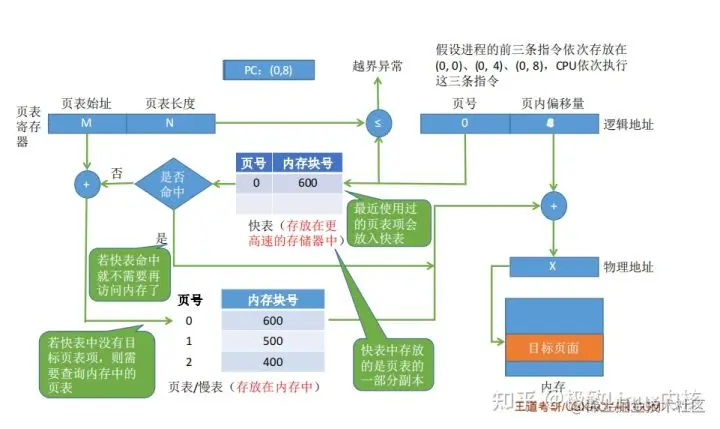 把存放在高速缓冲寄存器中的页表叫快表,这个高速缓冲寄存器又叫联想存贮器(TLB)。 与此对应,内存中的页表称为慢表。