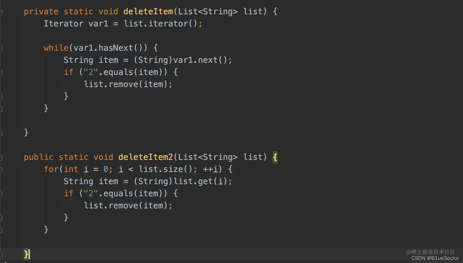 private static void deleteItem3(List<String> list) {