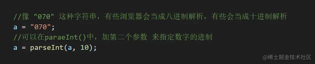 - parseInt() 把一个字符串转换为整数