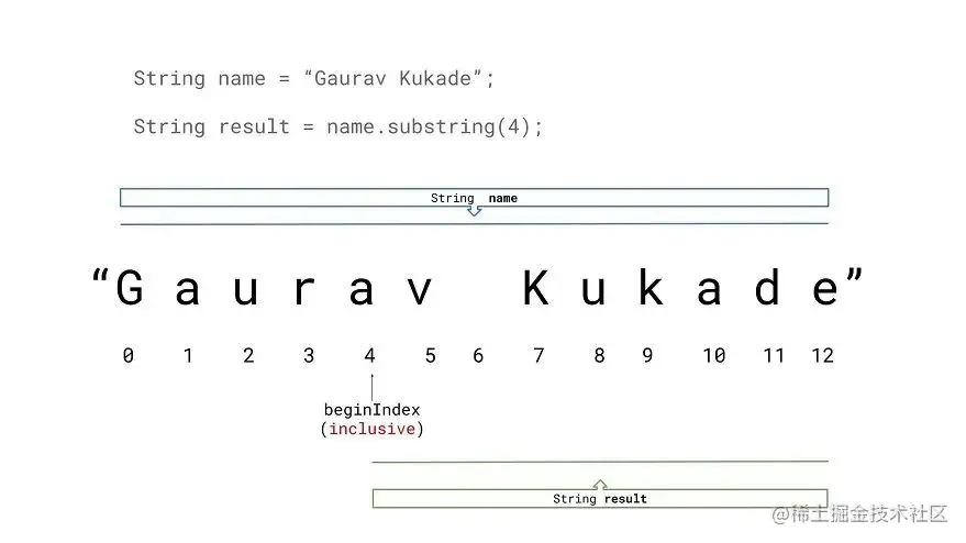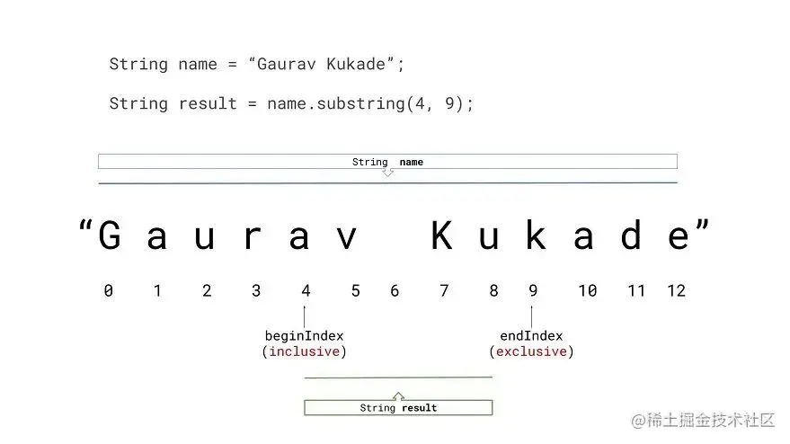 在第一个方法中,我们只给出了参数beinIndex,而在第二个变体中,我们同时给出了beginIndex和endIndex。