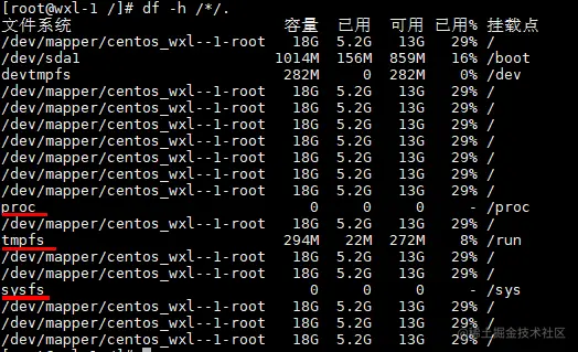 如下图红线标出的就是伪文件系统,也叫虚拟文件系统