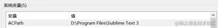 打开系统属性(win+R、输入sysdm.cpl),高级标签下环境变量,在系统变量内新建变量ACPath,值为刚才的安装路径。