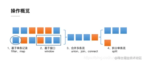 - 第二类是对多条记录的操作。比如说统计一个小时内的订单总成交量,就需要将一个小时内的所有订单记录的成交量加到一起。为了支持这种类型的操作,就得通过 Window 将需要的记录关联到一起进行处理