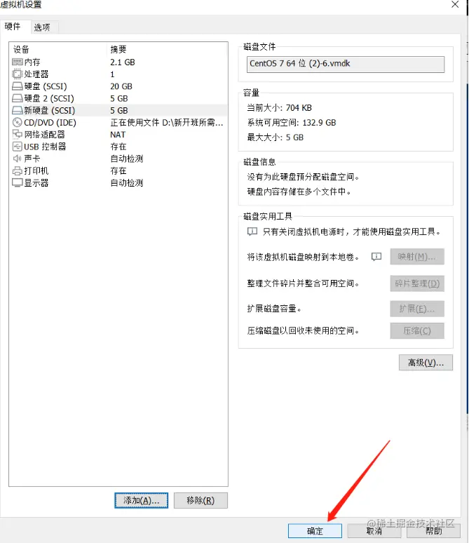 1.先添加硬盘,并让系统识别,可以重启,或者不重启的情况下输入一下命令