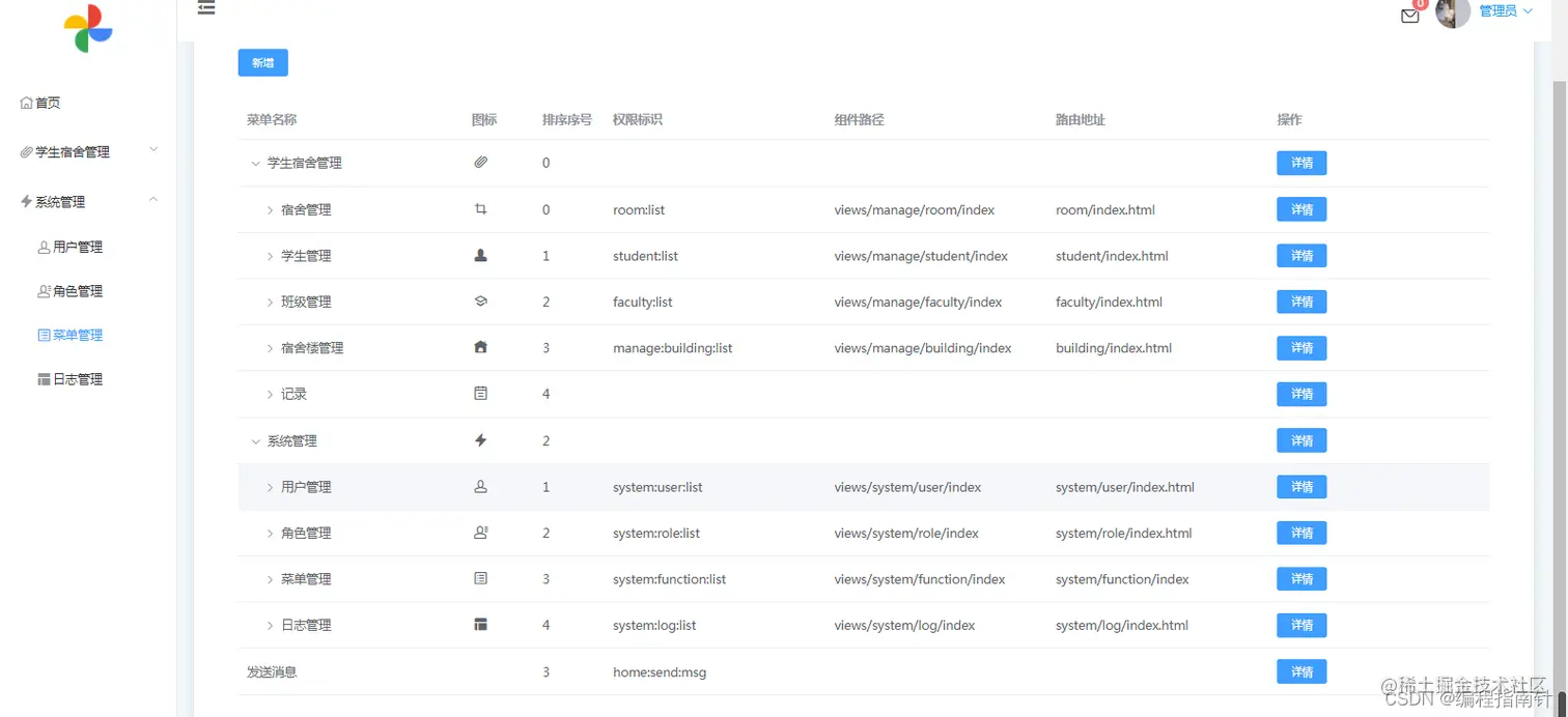 系统有完整的权限管理系统:用户可以自定义角色、权限和功能菜单,给不同的用户角色分配不同的功能,从而实现灵活的管理功能。