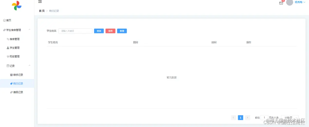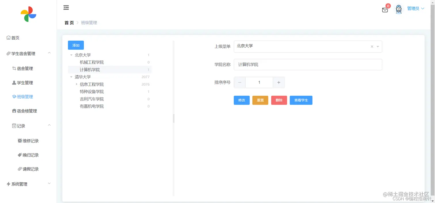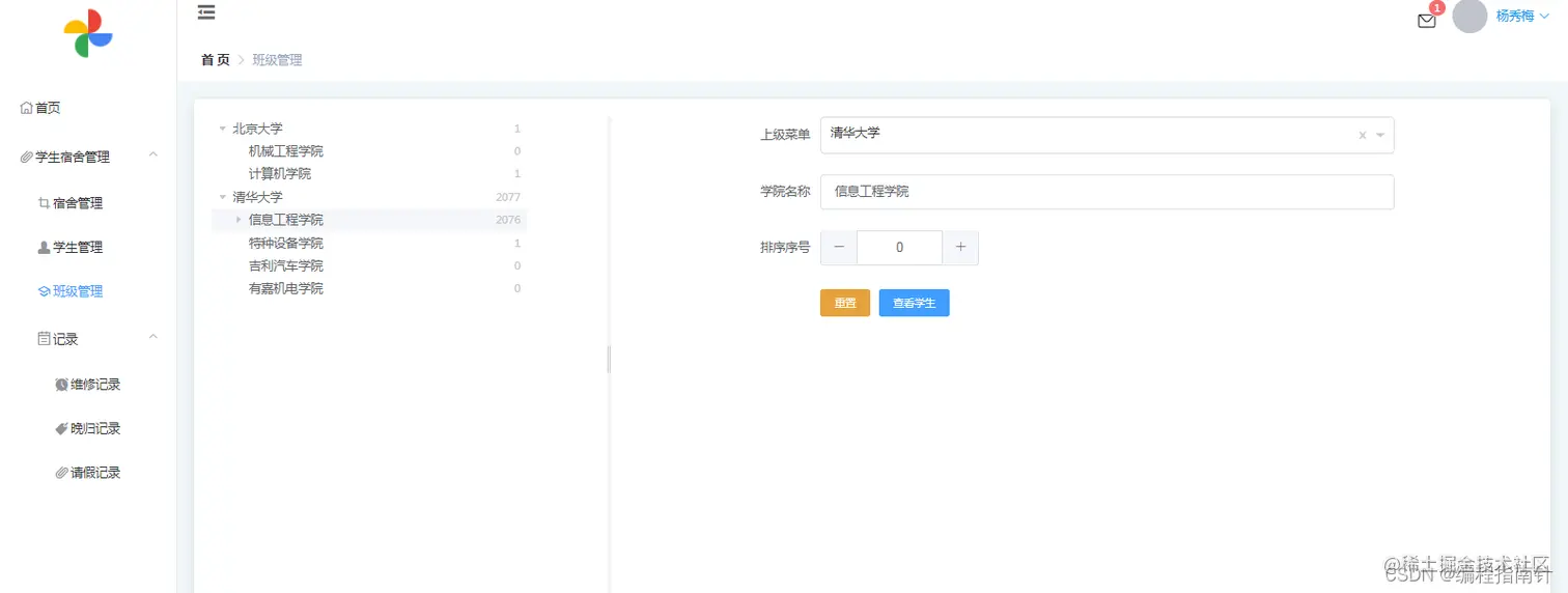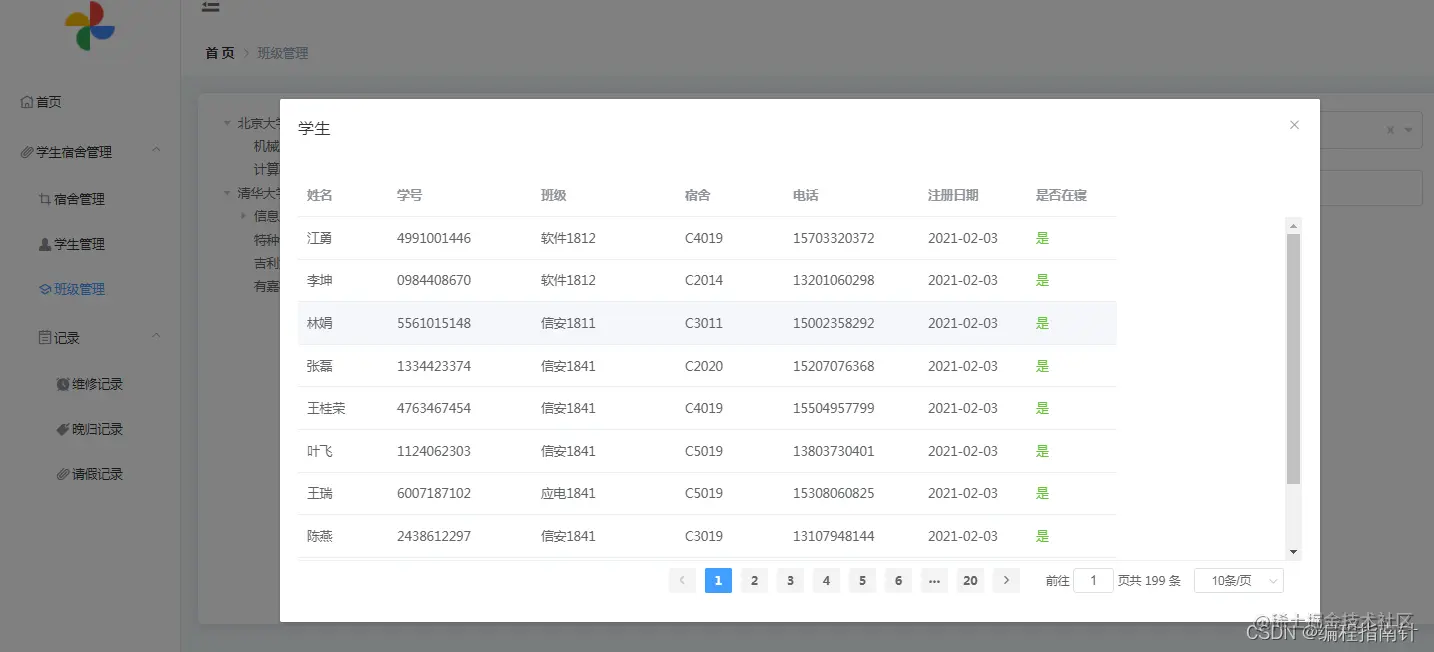学生管理、宿舍管理、班级管理、宿舍报修管理、请假管理、晚归管理