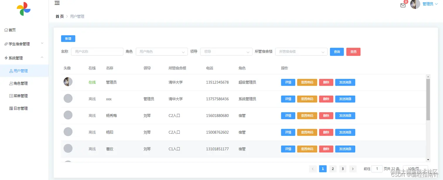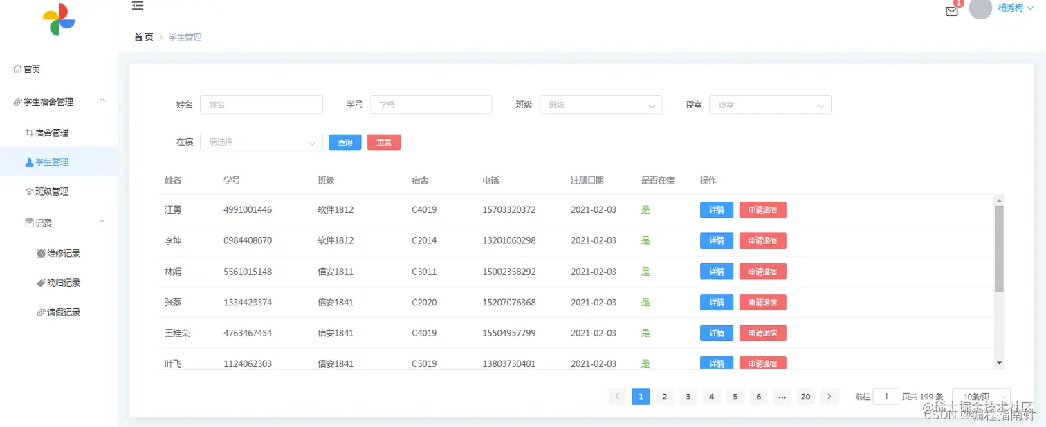 本系统基于springboot+vue采用前后端分离的方式实现了一个宿舍管理系统,功能完整,界面美观大方,交互简洁方便,比较适合做毕业设计使用。