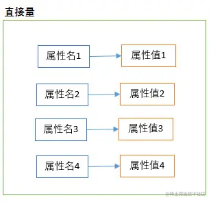 直接量:直接用两块内存分别保存属性名和属性值