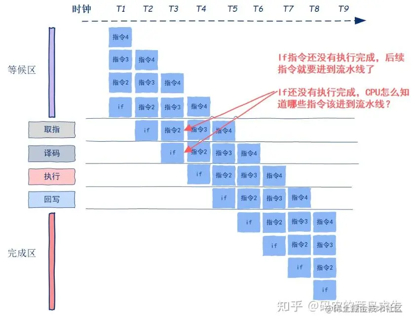 你没有看错,CPU 会猜一下 if 语句可能会走哪个分支,如果猜对了流水线照常继续,如果猜错了,对不起,流水线上已经执行的后续指令全部作废,因此我们可以看到如果CPU猜错了会有性能损耗。