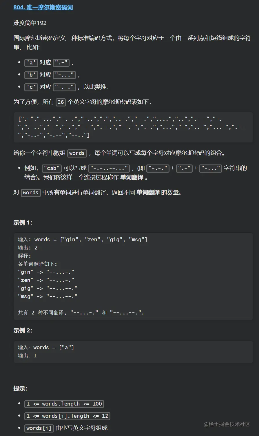 本次刷题日记的第 29 篇,力扣题为:804. 唯一摩尔斯密码词 ,简单
