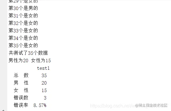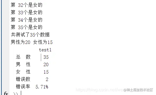 % fprintf('错误率:%f%%\n',error/length(man_woman)*100);
