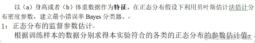 1. 以(a)身高或者(b)体重数据作为特征,在正态分布假设下利用贝叶斯估计法估计分布密度参数,建立最小错误率Bayes分类器。