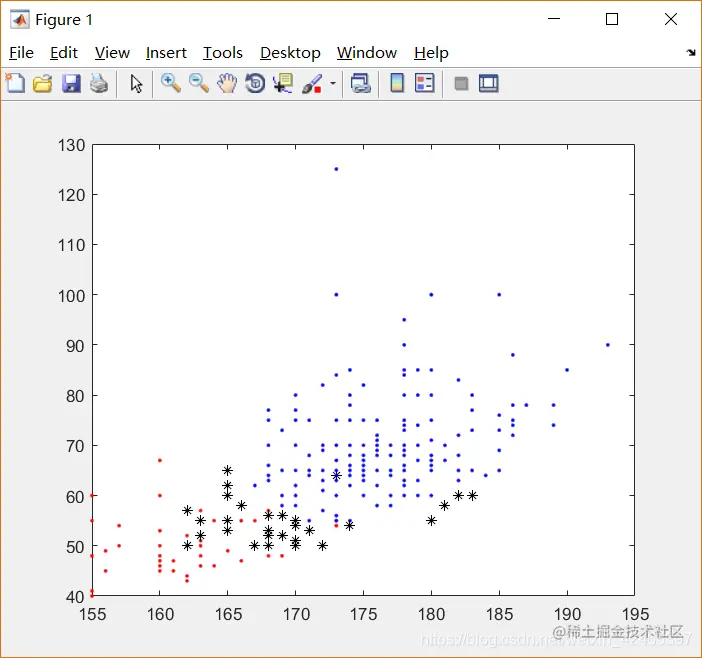% 红色代表女的,蓝色代表男的 如果判断错了,弄成黑色星号