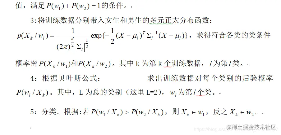 PXk_W1(i) = 1/sqrt(4pipijuzhen_male_det)exp(-0.5(hei_wei(i,:)-male_avr)juzhen_male_ni (hei_wei(i,:)-male_avr)' );