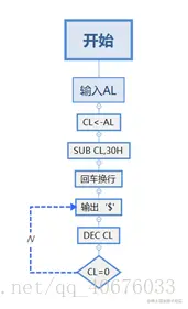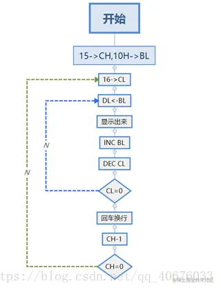 6.采用CL和CH分别来控制循环次数,内层循环为循环每一行的内容,其中需要输出空格,外层循环为输出下一行的内容,在一行输出完毕后需要输出回车换行,对此需要对DL重新赋值,需要保存之前的值。
