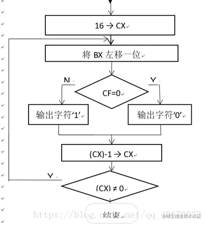 5. 将BX寄存器中的数用16位二进制数形式显示出来。