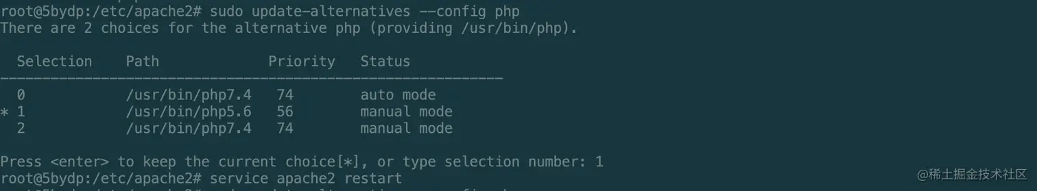 选择目前主机里面的7.x版本(没有的话请命令行安装php7)并重启apache