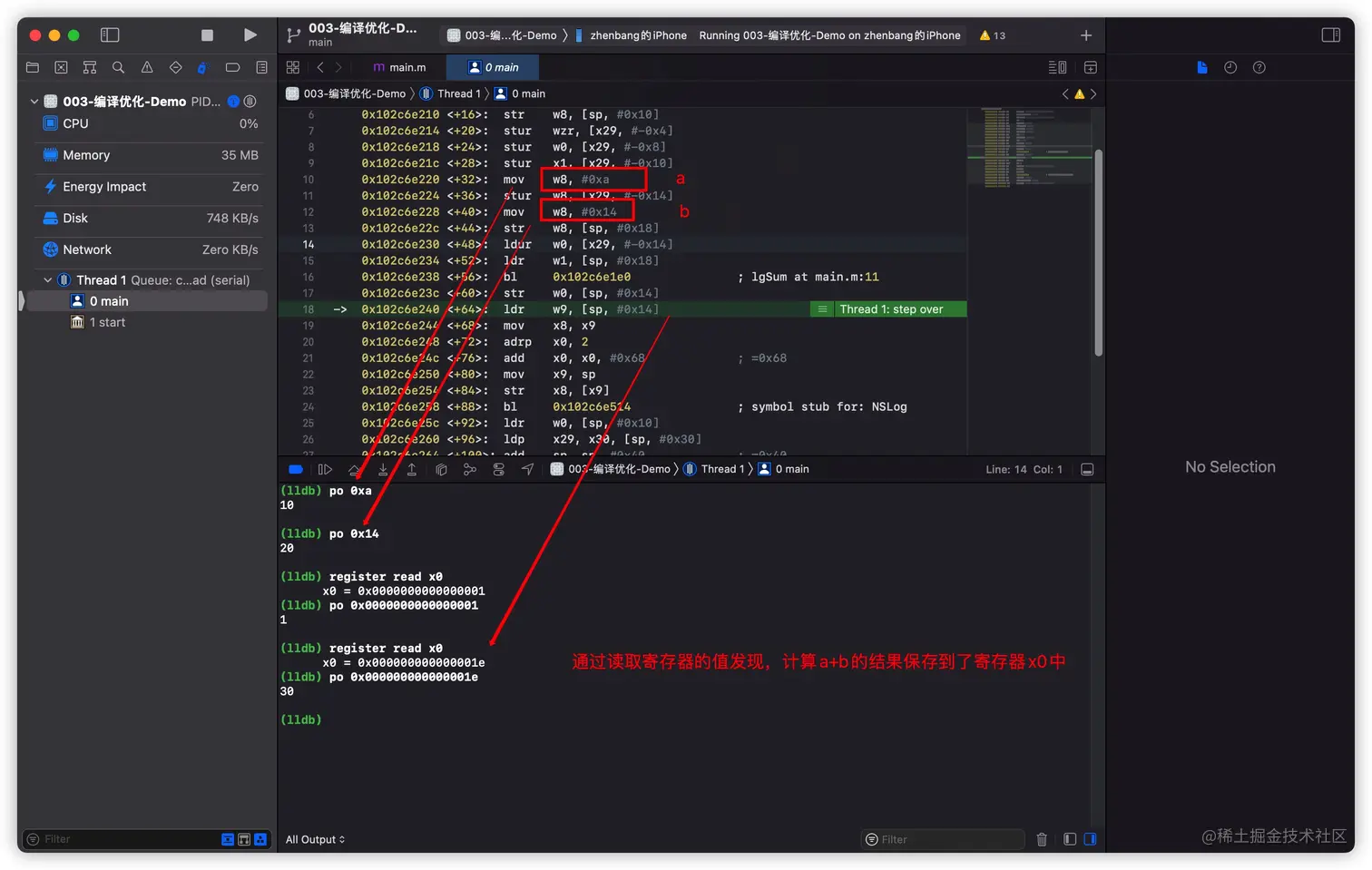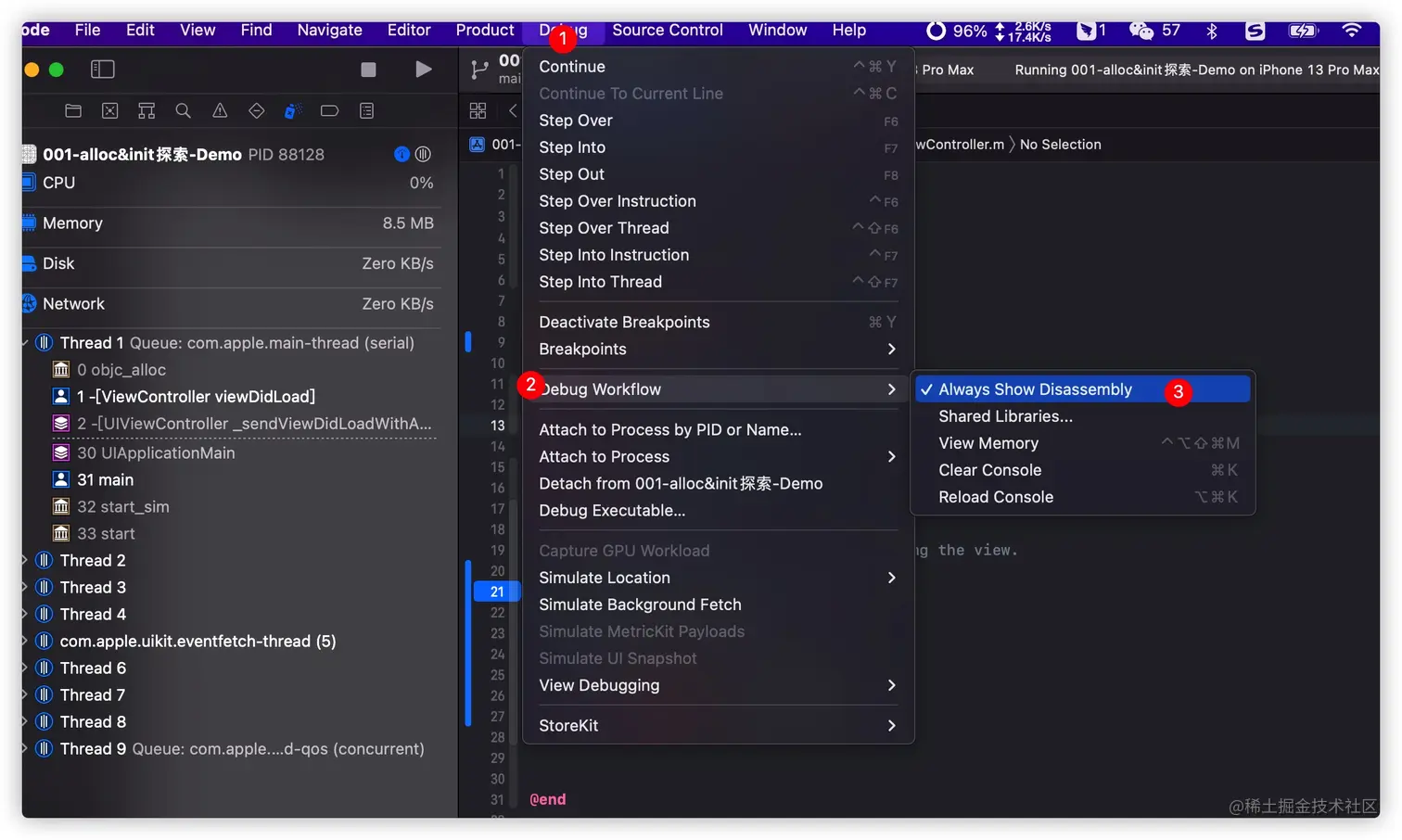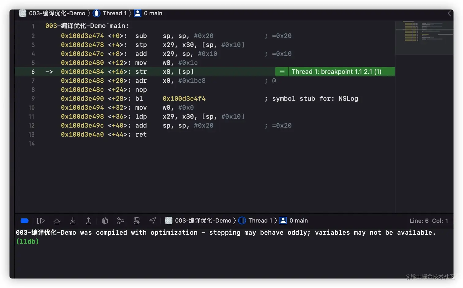 虽然我们看不懂汇编,但是通过call->symbol stub for: objc_alloc我们也可以大致理解,接下来函数会调用objc_alloc这个符号所代表的的函数。